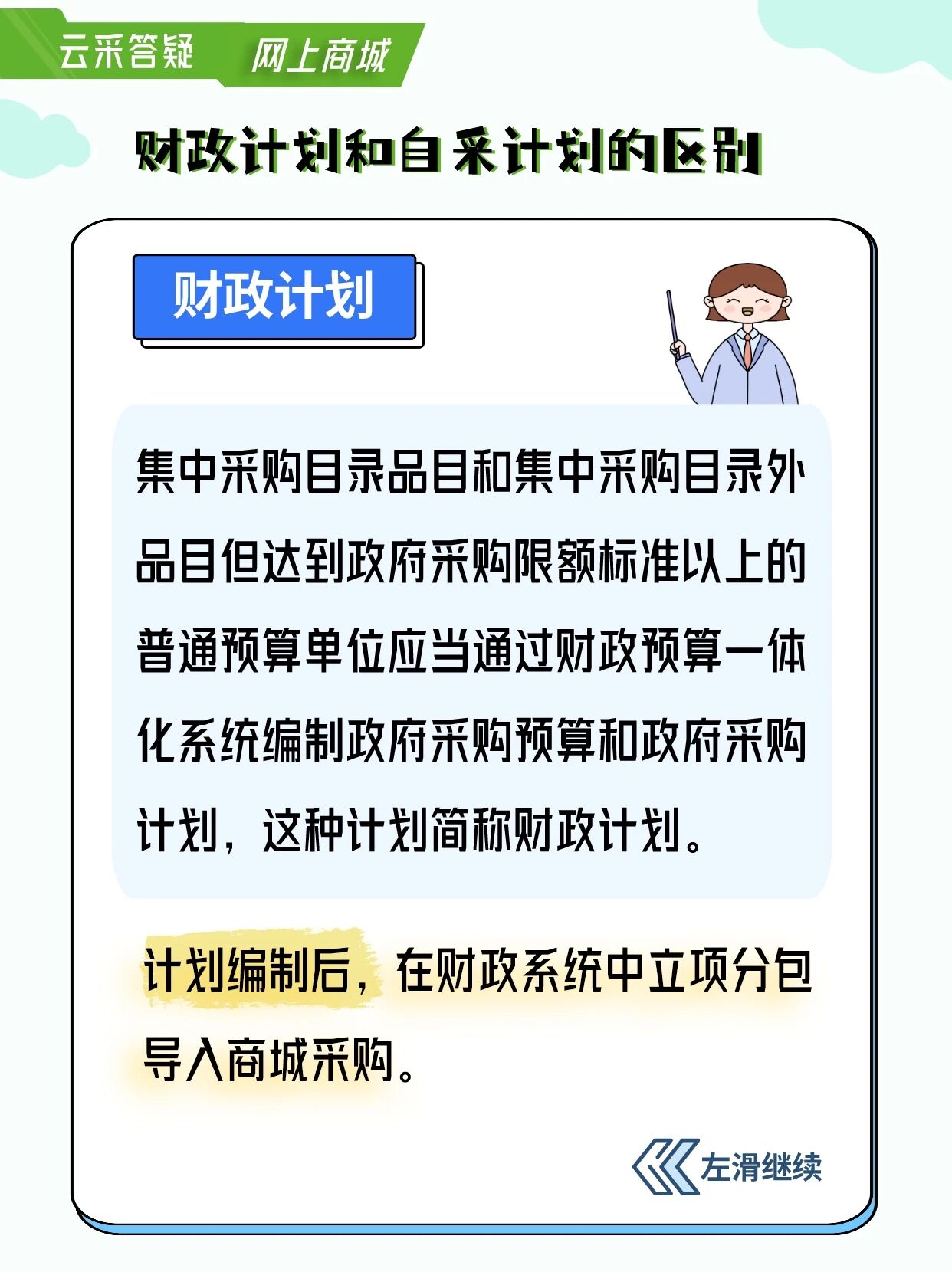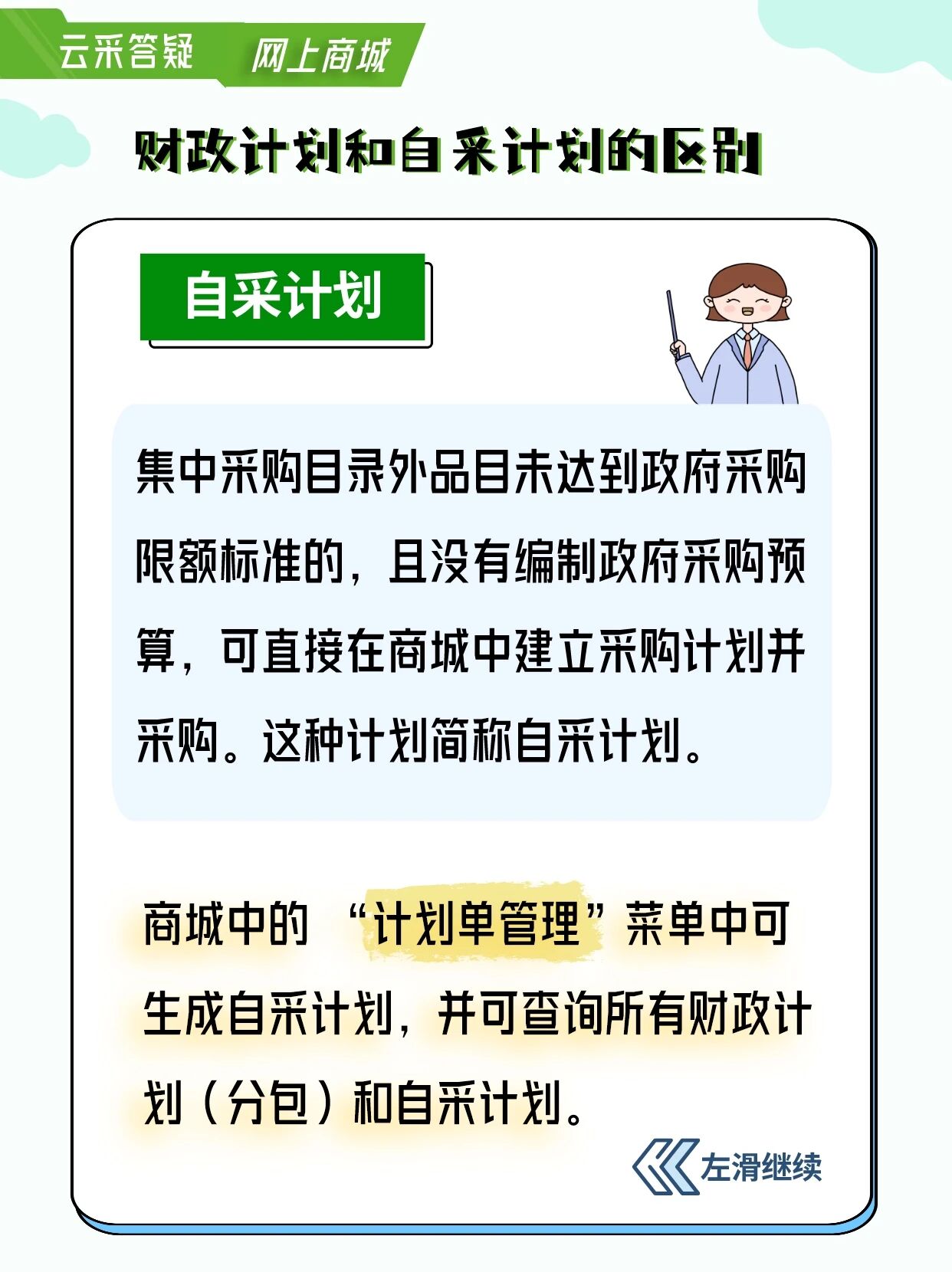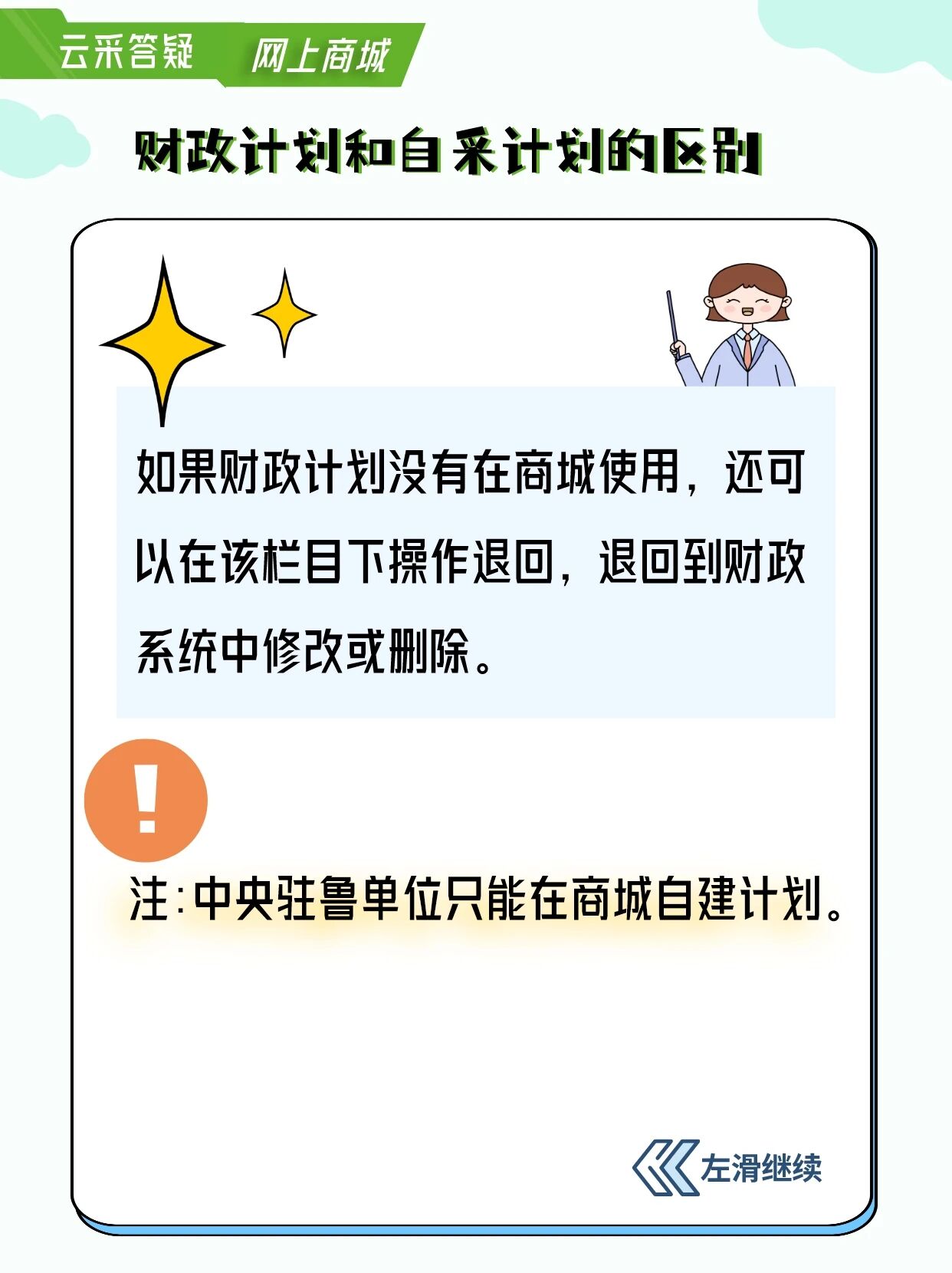 采购人在采购前应当建立采购计划。根据采购品目和采购限额标准,网上商城分为财政计划和自采计划。集中采购目录品目和集中采购目录外品目但达到政府采购限额标准以上的,普通预算单位应当通过财政预算一体化系统编制政府采购预算和政府采购计划,这种计划简称财政计划,计划编制后,在财政系统中立项分包导入商城采购。集中采购目录外品目未达到政府采购限额标准的,且没有编制政府采购预算,可直接在商城中建立采购计划并采购。这种计划简称自采计划。商城中的 “计划单管理”栏目中可生成自采计划,并可查询所有财政计划(分包)和自采计划。如果财政计划没有在商城使用,还可以在该栏目下操作退回,退回到财政系统中修改或删除。 注:中央驻鲁单位只能在商城自建计划。